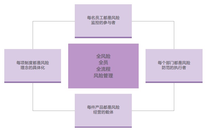 在風(fēng)險(xiǎn)文化方面,公司倡導(dǎo)并培育“全員、全業(yè)務(wù)、全流程”的風(fēng)險(xiǎn)管理文化,強(qiáng)化風(fēng)險(xiǎn)觀念和風(fēng)險(xiǎn)意識(shí)。同時(shí),強(qiáng)調(diào)將風(fēng)險(xiǎn)文化建立在制度和規(guī)則基礎(chǔ)上,將風(fēng)險(xiǎn)管理融入日常管理制度與操作流程中,使風(fēng)險(xiǎn)管理工作能夠覆蓋所有的部門和崗位,實(shí)現(xiàn)全體人員的參與。